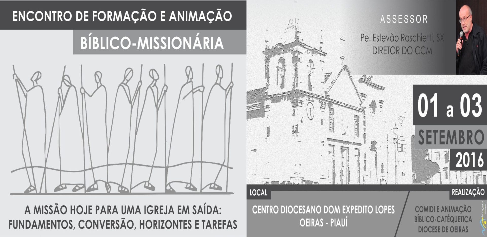 A Diocese de Oeiras em parceria com o COMIRE (Comissão Missionária do Regional) promovem o Encontro de formação e animação bíblico-missionária, com o tema “A missão hoje para uma Igreja em saída: fundamentos, conversão, horizontes e tarefas”. O encontro será assessorado pelo Pe. Estevão Raschietti, sx, diretor do CCM e acontecerá entres os dias 01 […]