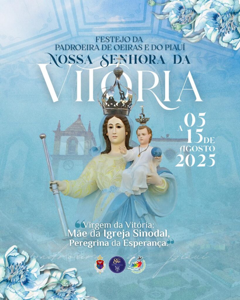 Estamos nos aproximando do Festejo de Nossa Senhora da Vitória, padroeira de Oeiras e do Piauí. O festejo será realizado de 05 a 15 de agosto, com missa campal no patamar da Catedral. Esse ano tem como tema: “Virgem da Vitória: Mãe da Igreja Sinodal, Peregrina da Esperança”. O tema escolhido está em comunhão […]