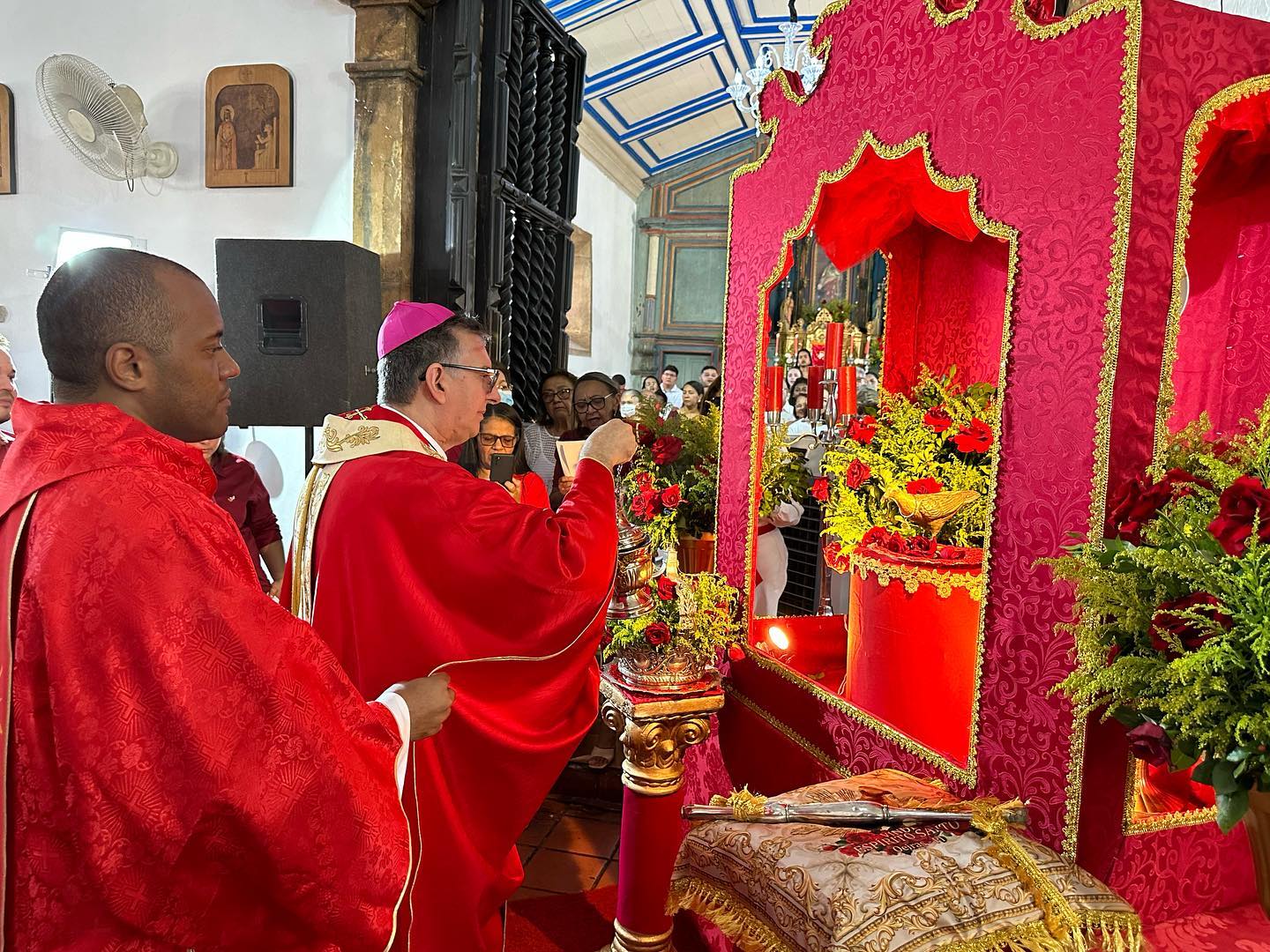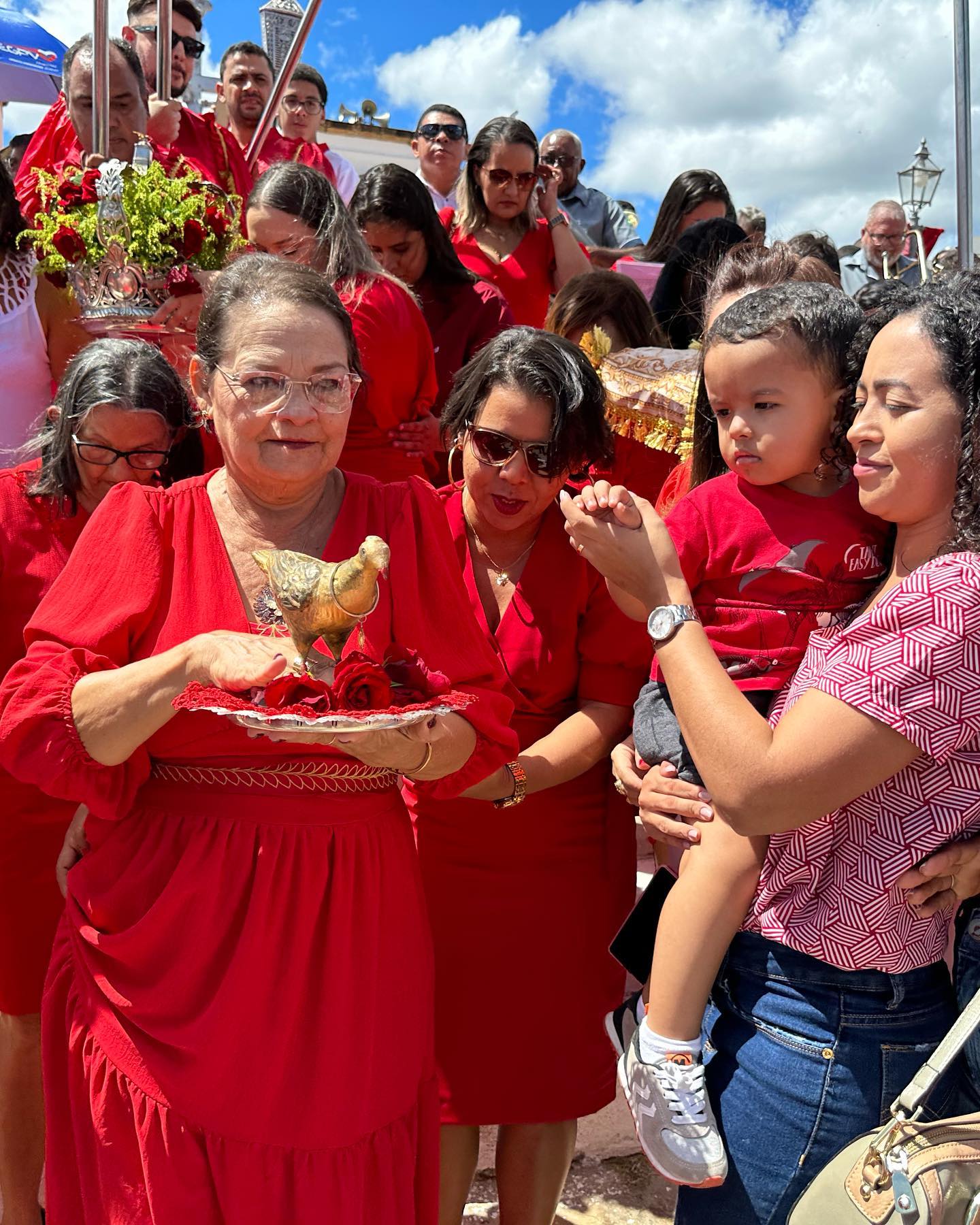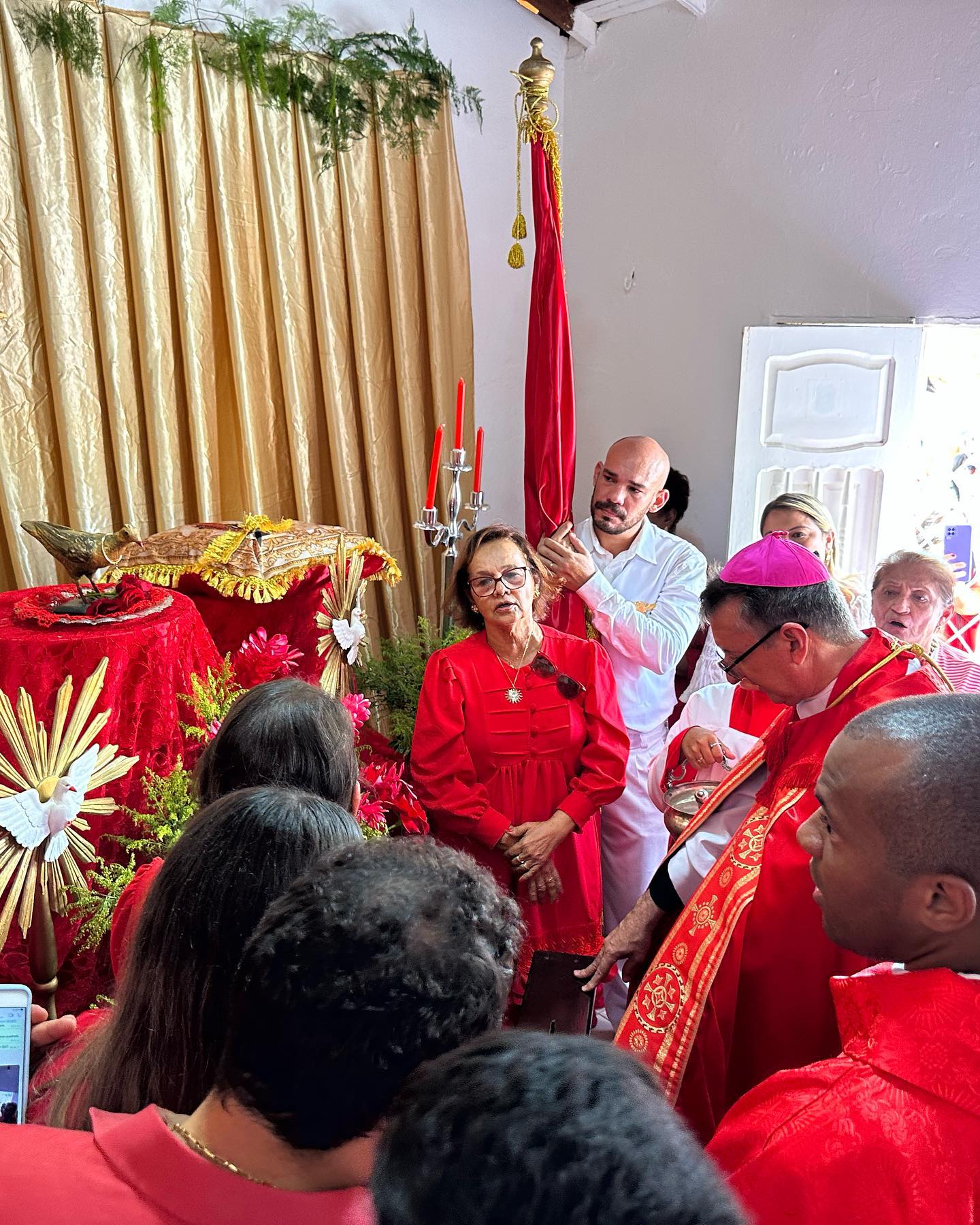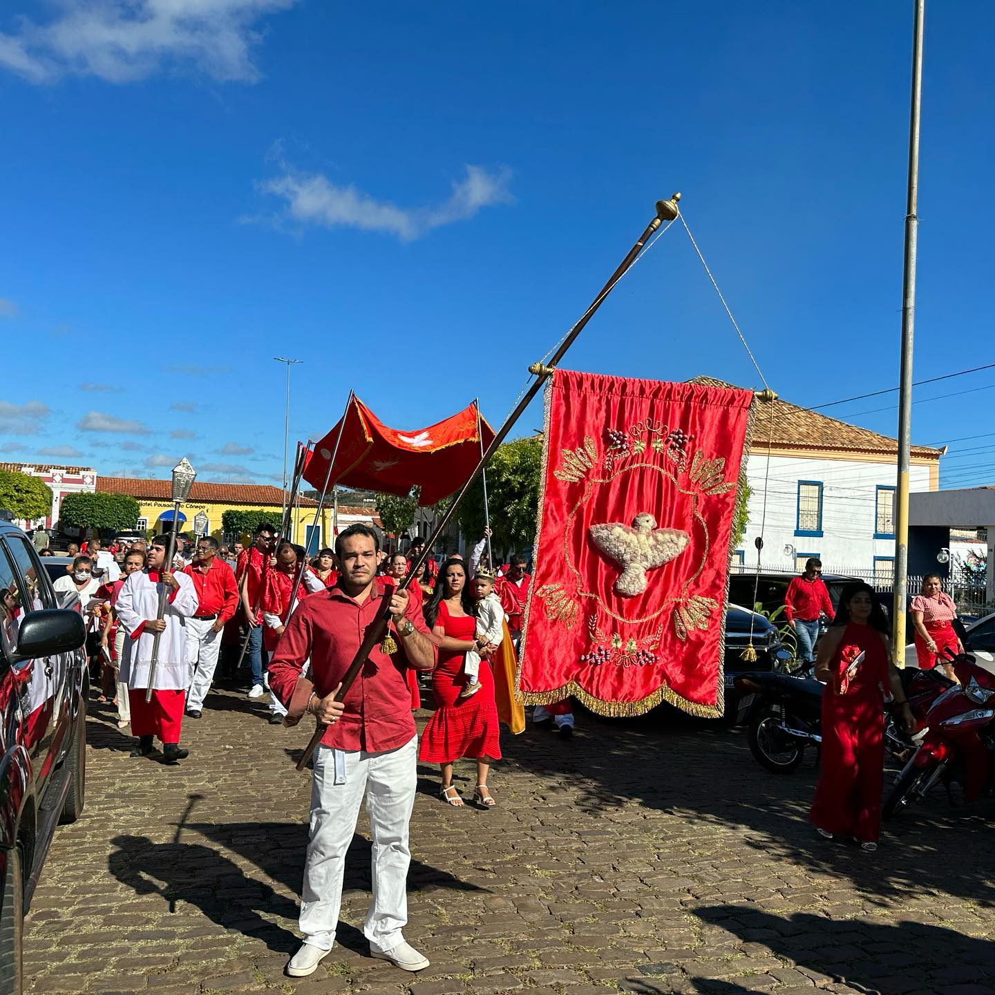 No domingo de Pentecostes, pela manhã a família Gomes de Freitas, com quem esteve a imagem neste último ano, seguiu em cortejo para a Catedral com as peças seculares. Os fiéis e todo clero, se vestem de vermelho, a cor predominante em alusão às línguas de fogo, forma manifestada do Divino Espírito Santo aos Apóstolos em Jerusalém.