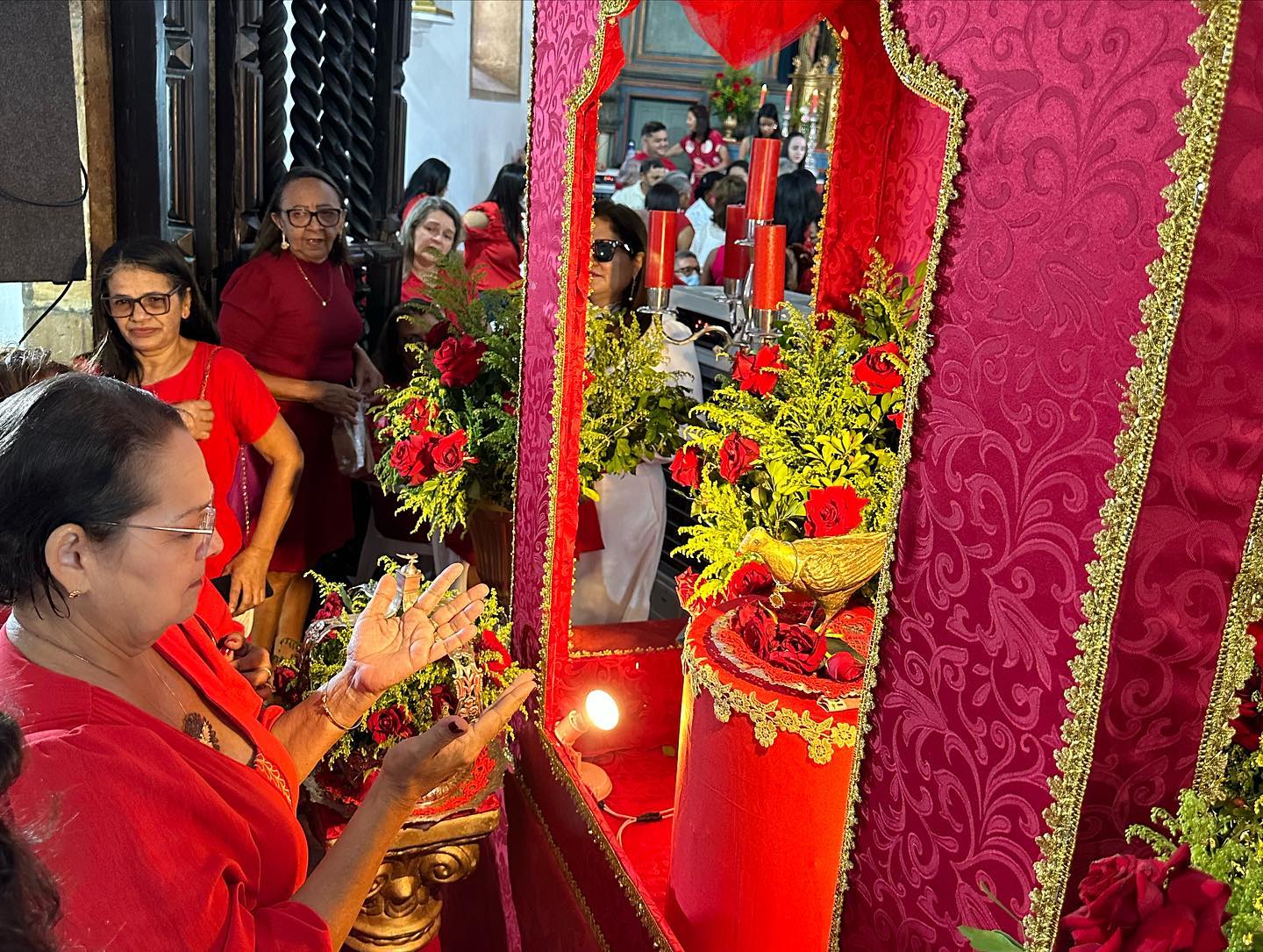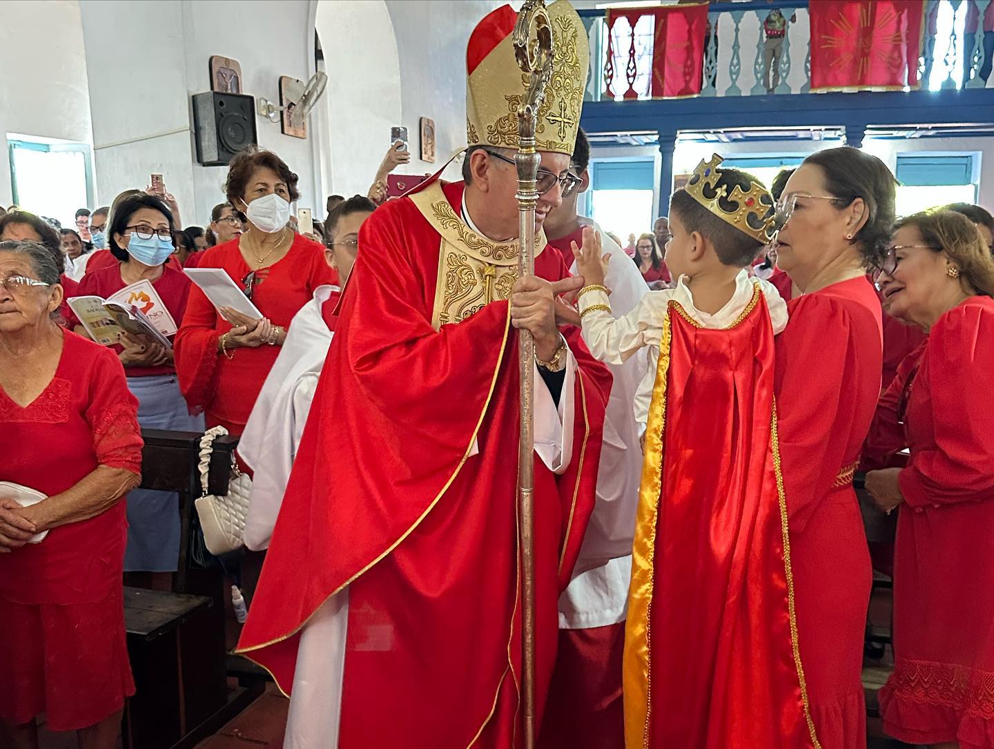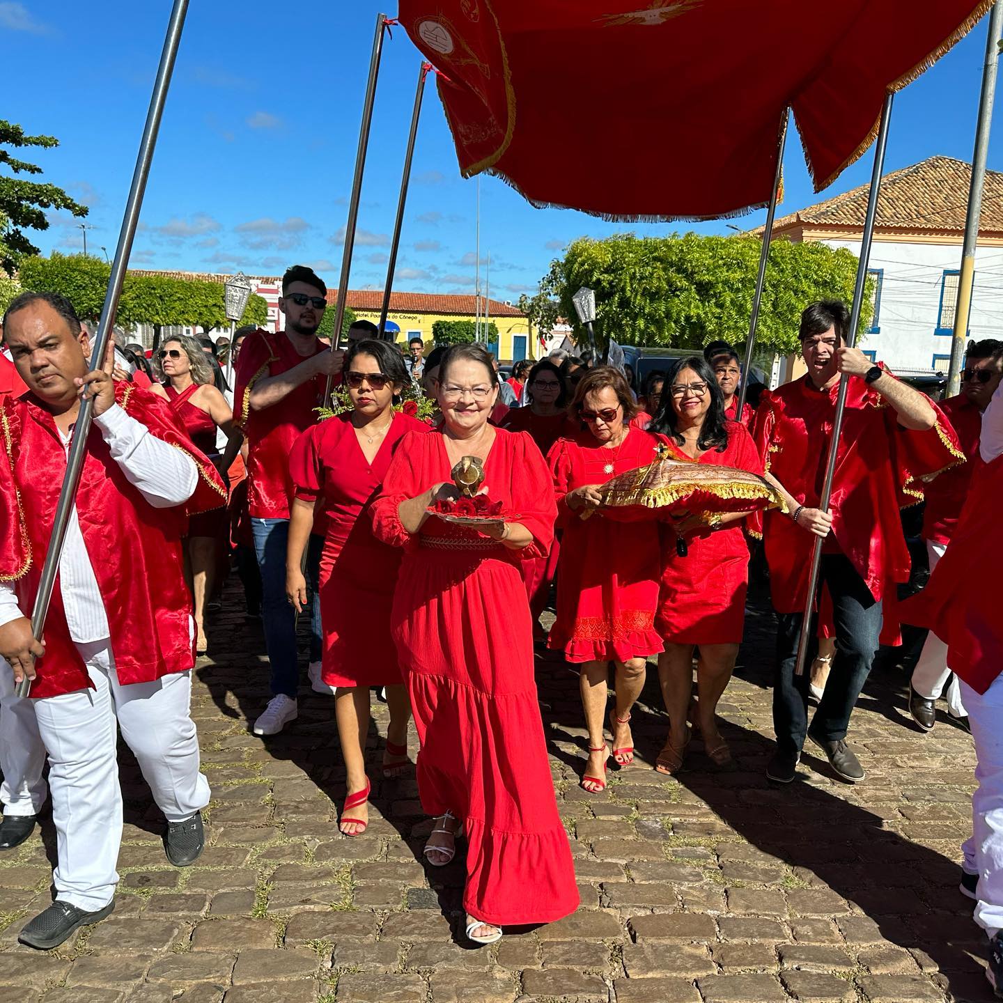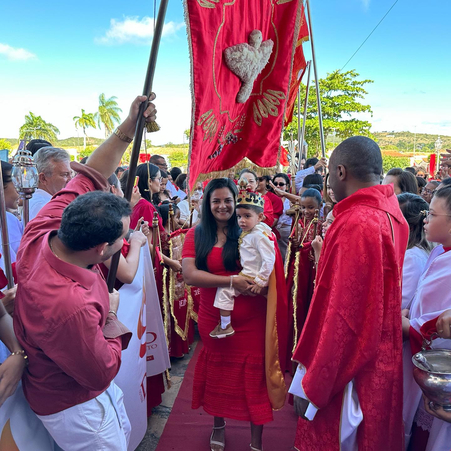 No domingo de Pentecostes, pela manhã a família Gomes de Freitas, com quem esteve a imagem neste último ano, seguiu em cortejo para a Catedral com as peças seculares. Os fiéis e todo clero, se vestem de vermelho, a cor predominante em alusão às línguas de fogo, forma manifestada do Divino Espírito Santo aos Apóstolos em Jerusalém.