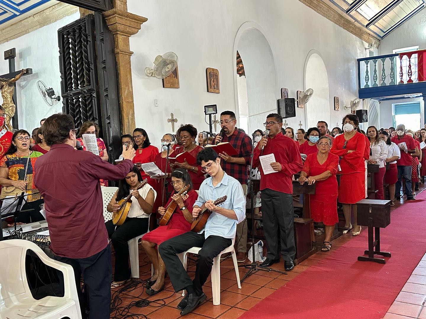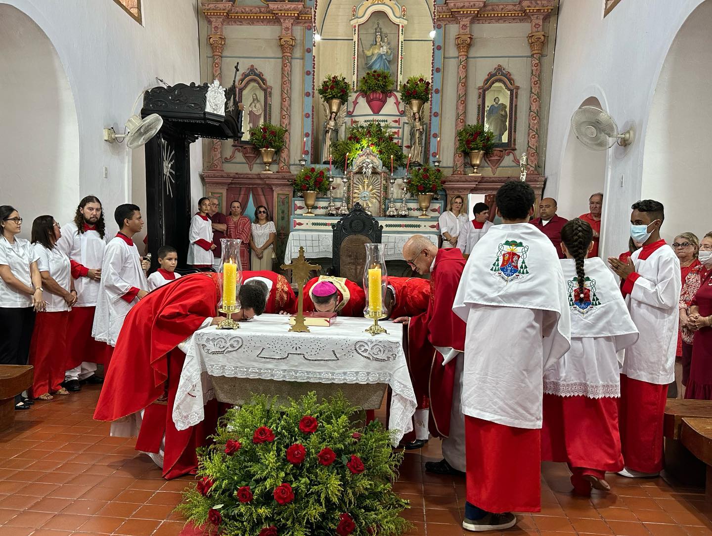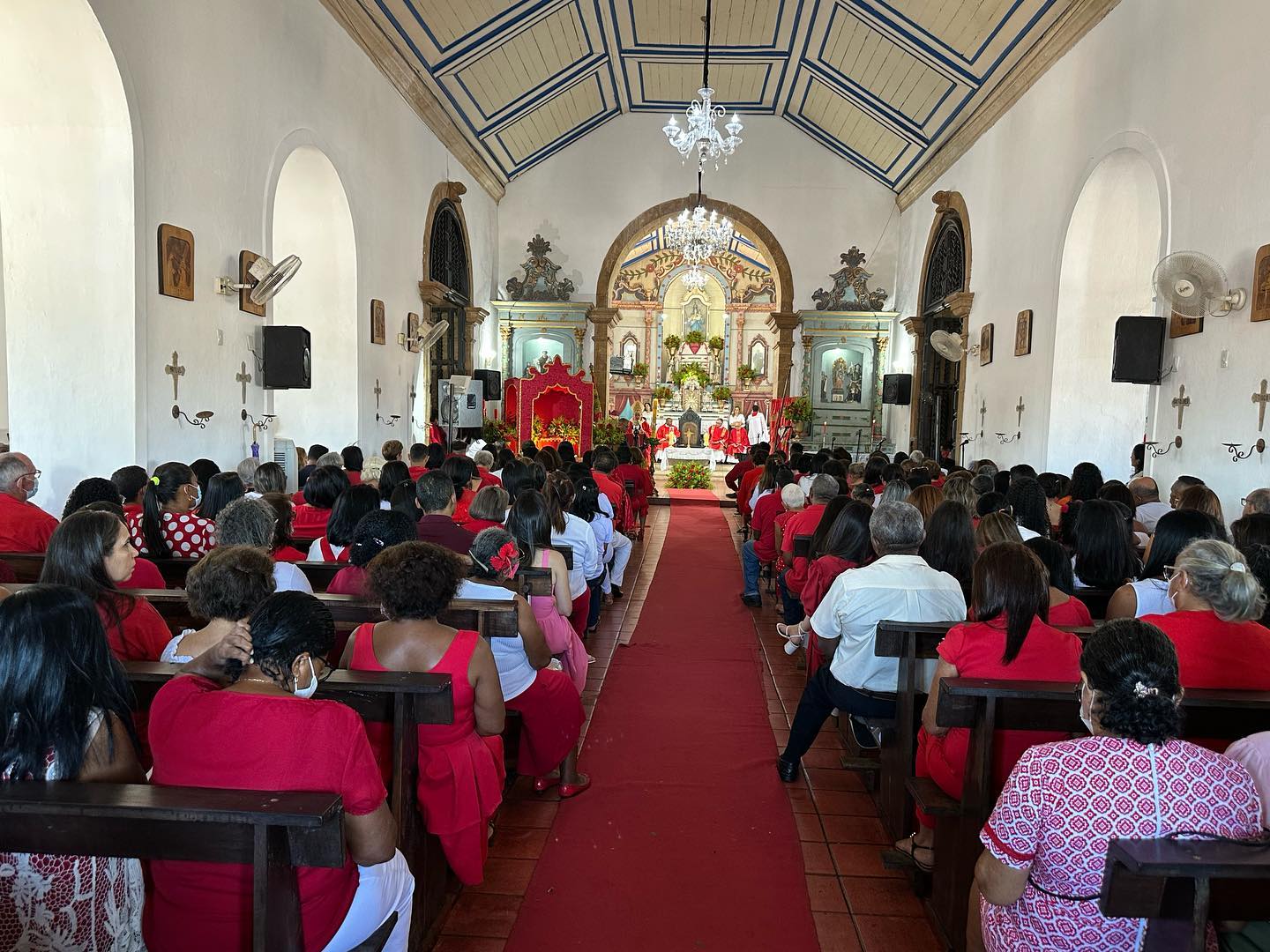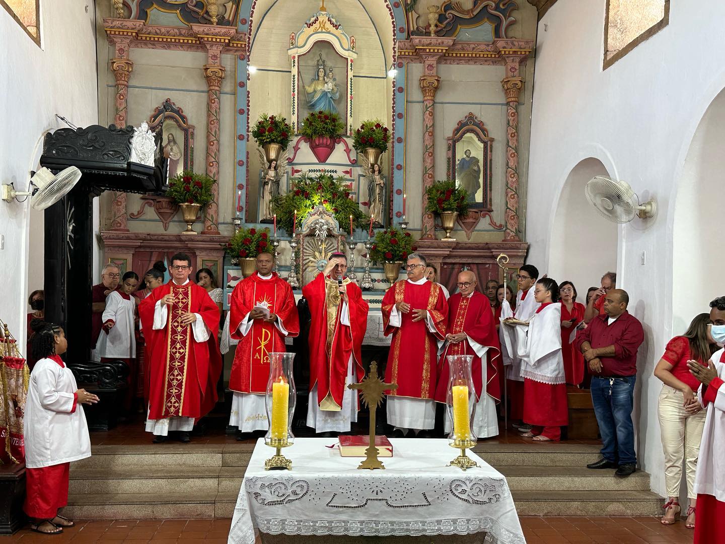 A Missa Solene das 9h foi presidida pelo Bispo Diocesano Dom Edilson Nobre e concelebrada pelo Pe. Rogério Nascimento, pároco de Nossa Senhora da Vitória, Padre José Francisco, Diác. Nailson Silva e Diác. Gutemberg Rocha, com a participação de centenas de fiéis, que, de dentro e de fora da tricentenária Catedral, acompanharam com fé a celebração.