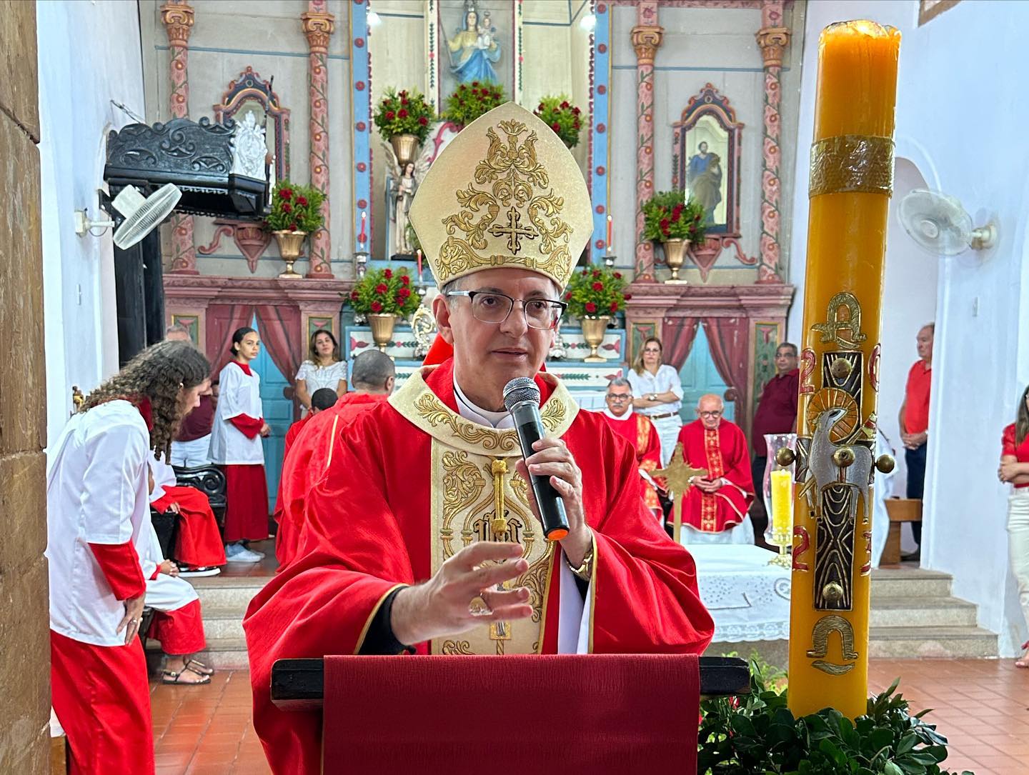 Em sua homilia, Dom Edilson ressaltou que a Igreja no mundo inteiro celebra neste dia a Festa do Divino, o dia de Pentecostes. Na igreja Mãe de nossa Diocese de Oeiras, a Catedral de Nossa Senhora da Vitória, esta efervescência foi vivida com toda intensidade desde o dia 18 de maio, com a Missa de Abertura, em via pública, diante do Santuário do Divino, juntamente com a família Gomes de Freitas que concluiu a sua missão de cuidar da imagem do Divino.