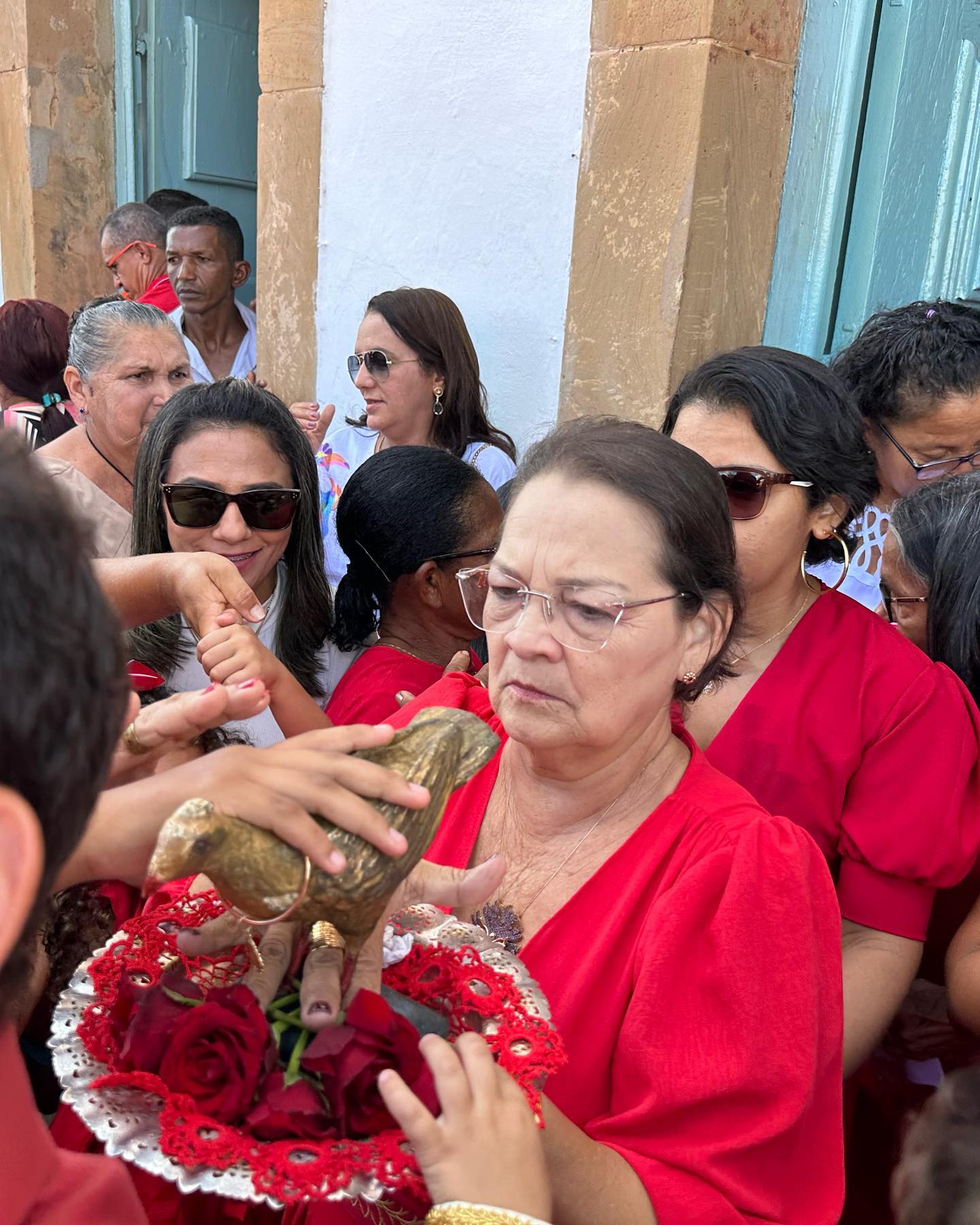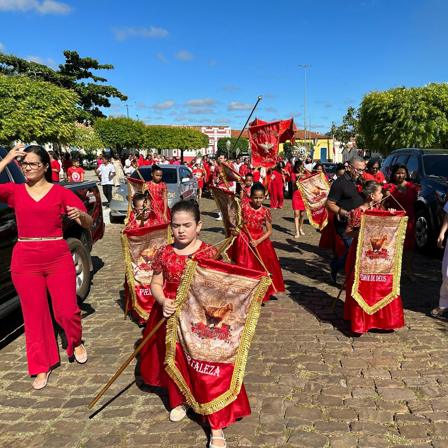As 19h, aconteceu a “Missa de Entrega do Divino”, onde a  “Família do Sr. Cleiton Barbosa Araújo”, recebeu a imagem e levou para o nova santuário localizado na Rua do Fogo, número 88, Centro de Oeiras, residência do decorador Wellestron Martins.