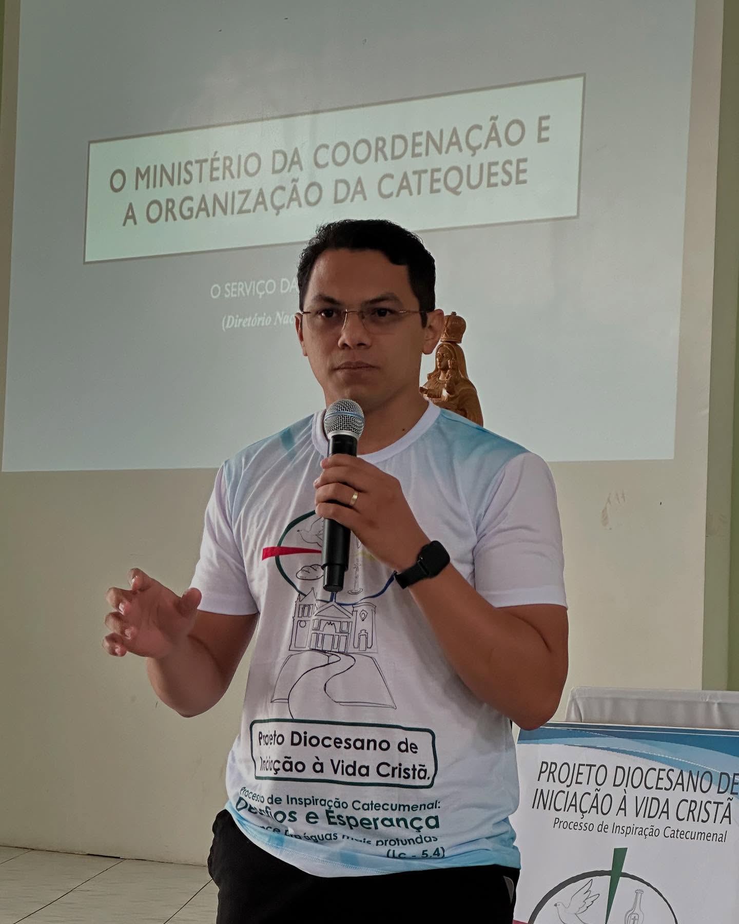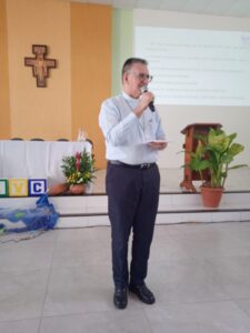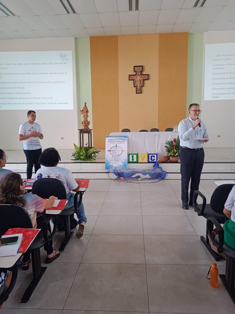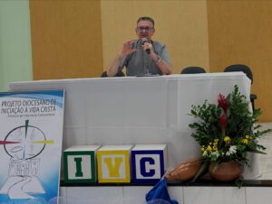 Na manhã do sábado, após oração inicial, o Padre Estevão, em suas palavras, disse que os catequistas devem usar as palavras da carta de São Paulo: “Reaviva o Dom de Deus que há em mim”, devem fazer ecoar estas palavras, porque Deus nos deu espirito de fortaleza para nos dizer que todos somos chamados e vocacionados; Que bom olharmos para a história da Diocese e percebermos seus 80 anos de caminhada e que temos um Projeto que nos faz caminhar, mas que este precisa a cada tempo ser analisado; então queremos aqui perceber o que a Igreja está nos orientando, o que nós temos e como precisamos aprimorar , pois o que queremos com este processo é homens e mulheres convictos de sua fé. À luz do Diretório vamos falar sobre a Comissão de Iniciação á Vida Cristã e assim perceber o nosso caminho; o subtema desta Assembleia: Projeto Diocesano de Iniciação á Vida Cristã-Processo de Inspiração Catecumenal, desafios e esperanças, “nos convida a sair de uma catequese meramente conteudista para uma catequese querigmática, mistagógica, fazendo as pessoas experienciar, vivenciar.” Pontuou Padre Estevão.