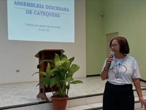 Neste ano Santo Jubilar Peregrinos da Esperança e ano do Jubileu Diocesano – 80 anos, num conjunto de partilha, escuta, aprendizado e renovação espiritual, a Assembleia Diocesana da Catequese refletiu e avaliou o caminho percorrido, a partir do Projeto Diocesano de Iniciação à vida Cristã para fortalecer cada vez mais a comunhão e o crescimento da fé. Assim, durante os dias reunidos em Assembleia, foi revisado o Projeto na perspectiva do que fizeram e do que ainda precisa ser feito, norteados pelo TEMA: Projeto Diocesano de Iniciação á Vida Cristã-Processo de Inspiração Catecumenal: Desafios e Esperança e iluminados pela passagem bíblica “Avance para águas mais profundas” (Lucas 5,4), seguindo o tradicional método ver, julgar, agir, celebrar e enviar.