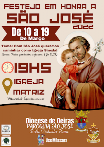 Do dia 10 a 19 de março de 2022, realizar-se-á o Novenário e Festa em Honra a São José, que tem como tema: “Com São