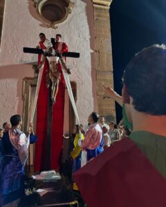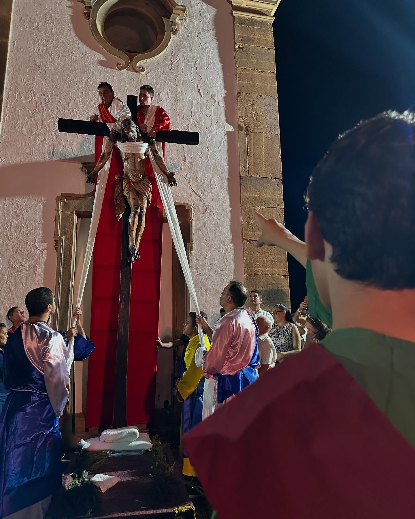Após esse gesto, Dom Edilson fez a benção e todos se aproximam do patamar da Igreja, para acompanhar o Descimento da Cruz, o Sermão do Descimento e Procissão do Senhor Morto.