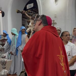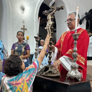Nesta sexta-feira Santa, dia 18/04/2025, teve início às 17h, na Catedral de Nossa Senhora da Vitória, a celebração da Paixão do Senhor, com a Veneração da Santa Cruz, momento este apresentado pelo bispo Dom Edilson, onde com a cruz coberta, os cravos vão sendo retirados. Os fiéis são convidados a realizar a veneração da Cruz – beijo da cruz – em sinal de adoração. O rito acontece em silêncio.