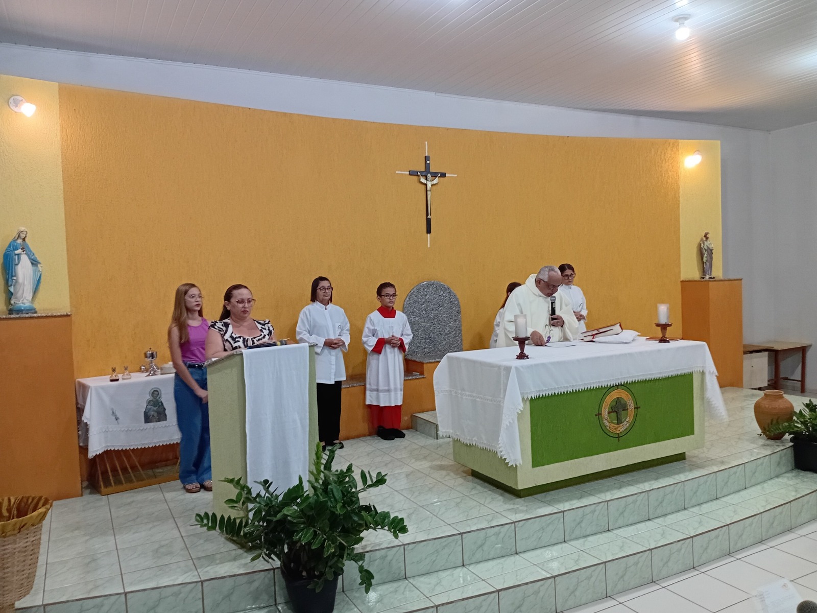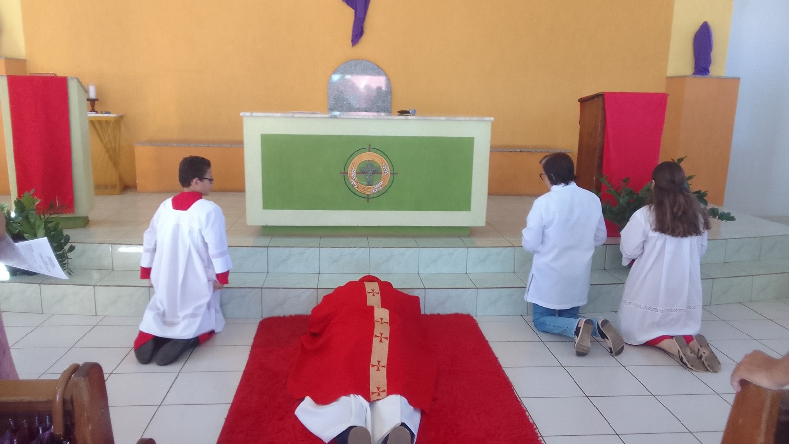 O Tríduo Pascal iniciou às 19 horas com a celebração da Ceia do Senhor e o rito do lava pés, na qual doze pessoas da comunidade revestidas como os discípulos fizeram parte deste momento, encerrando a celebração com o translado do corpo e sangue de Jesus. Na sexta-feira Santa, às 15 horas realizou-se a celebração da Paixão do Senhor com a adoração da Santa Cruz, o beijo da cruz e a proclamação da narração da condenação, crucificação e morte de Nosso Senhor Jesus Cristo, a celebração do silêncio, onde todos deixaram a matriz de forma discreta e silenciosa.