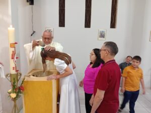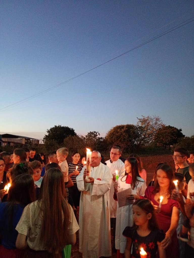O Sábado Santo na paróquia foi celebrado em dois momentos, às 18 horas celebrou-se na comunidade Patos e às 20 horas na sede da paróquia, a Vigília Pascal, a bênção do fogo novo, e todos os ritos da Noite Santa, inclusive com celebração de batizados na matriz. Por fim, às 19 horas do domingo, 20 de abril, realizou a missa da Páscoa, o Domingo da Ressurreição do Senhor. Em todas as celebrações foram bem participativas, com presenças de fiéis da sede de alguns setores missionários rurais da paróquia.