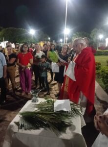 As celebrações iniciaram com o Domingo de Ramos dia 13 de abril às 18 horas e 30 minutos com a procissão de ramos saindo da praça central até a matriz, na ocasião celebrou-se também a missa com a partilha do dízimo dos setores sede da paróquia. Na quarta-feira às 16 horas foi realizada a missa com a unção dos enfermos aos enfermos da sede paroquial e a toda comunidade presente.
