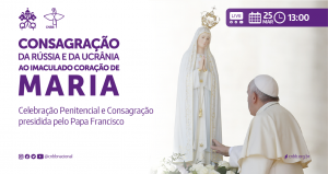Na próxima sexta-feira, 25 de março, festa da Anunciação, às 17h (às 13h, no horário de Brasília), o Papa Francisco consagrará a humanidade, e de forma especial a Rússia e a Ucrânia, ao Imaculado Coração de Maria. No final da celebração, que seguirá a liturgia penitencial, Francisco pronunciará a oração de consagração. A liturgia terá início às 17h00 (hora de Roma), enquanto a consagração terá lugar por volta das 18h30. Todos os bispos e todos os sacerdotes do mundo são convidados a unir-se nesta súplica.