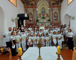 Com entusiasmo e num clima de alegria e oração, pais, catequistas e comunidade renderam graças a Deus por esse momento tão importante, onde os catequizandos que fizeram o IVC – Itinerário de Iniciação à Vida Cristã receberam o Sacramento da Eucaristia.