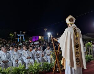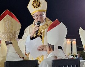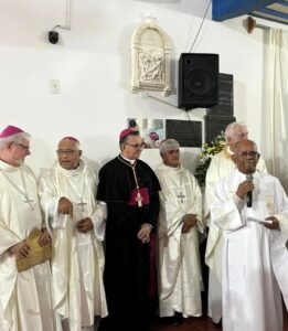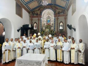 Por fim, ouviu-se a palavra do pastor da Diocese Oeiras, Dom Edilson Soares Nobre, que agradeceu a cada bispo, padre, religioso(a) e a cada leigo(a) presentes. Agradeceu também a todas as autoridades nas pessoas do prefeito de Oeiras, Dr. Hailton Alves Filho, e do presidente da Câmara Municipal de Oeiras, vereador José Amilton Barbosa Moura. E com o Hino do Jubileu, o povo de Deus cantou: “feito chuva que verdeja o sertão, Deus plantou-se neste chão”; e rezou: sejamos todos “uma Igreja sinodal, peregrina de esperança, para o bem do rebanho do Senhor”.