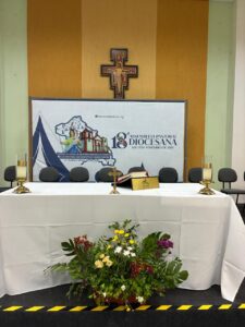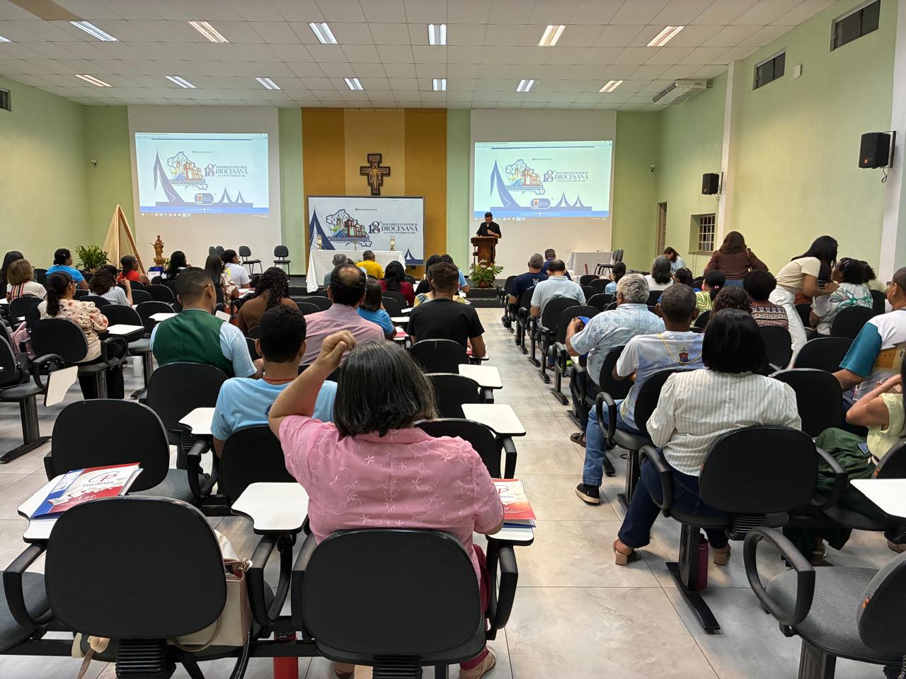 Após a missa foi realizada a acolhida a todos os setores da diocese e o coordenador diocesano de Pastoral, Pe. Rogério Nascimento fez uma memória da história da Diocese de Oeiras desde o seu surgimento até os dias atuais, passando por todos os momentos importantes e marcantes na vida social, política e religiosa de Oeiras e proferiu a 1ª Conferência da assembleia com o Título “Memória, discernimento e conversão pastoral: comunhão, participação e missão” com base no três fundamentos do documento Instrumentos Laboris, a saber, Comunhão – Participação – Missão.
