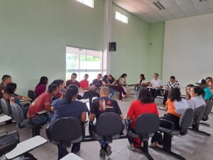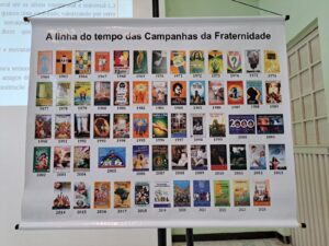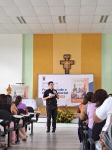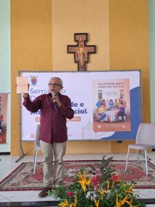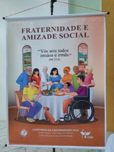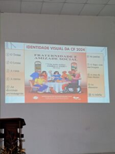 Pela manhã, houve o momento de oração conduzida pelo professor Nilson e a palestra que refletiu sobre o tema da Campanha da Fraternidade 2024 Fraternidade e Amizade Social.
