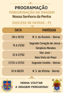Após esse período de peregrinação, a imagem seguirá para a Diocese de Picos no dia 08 de março.