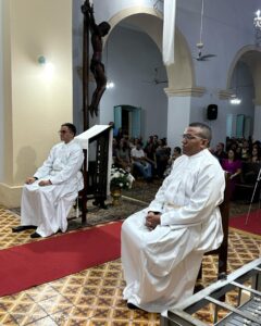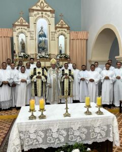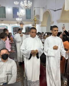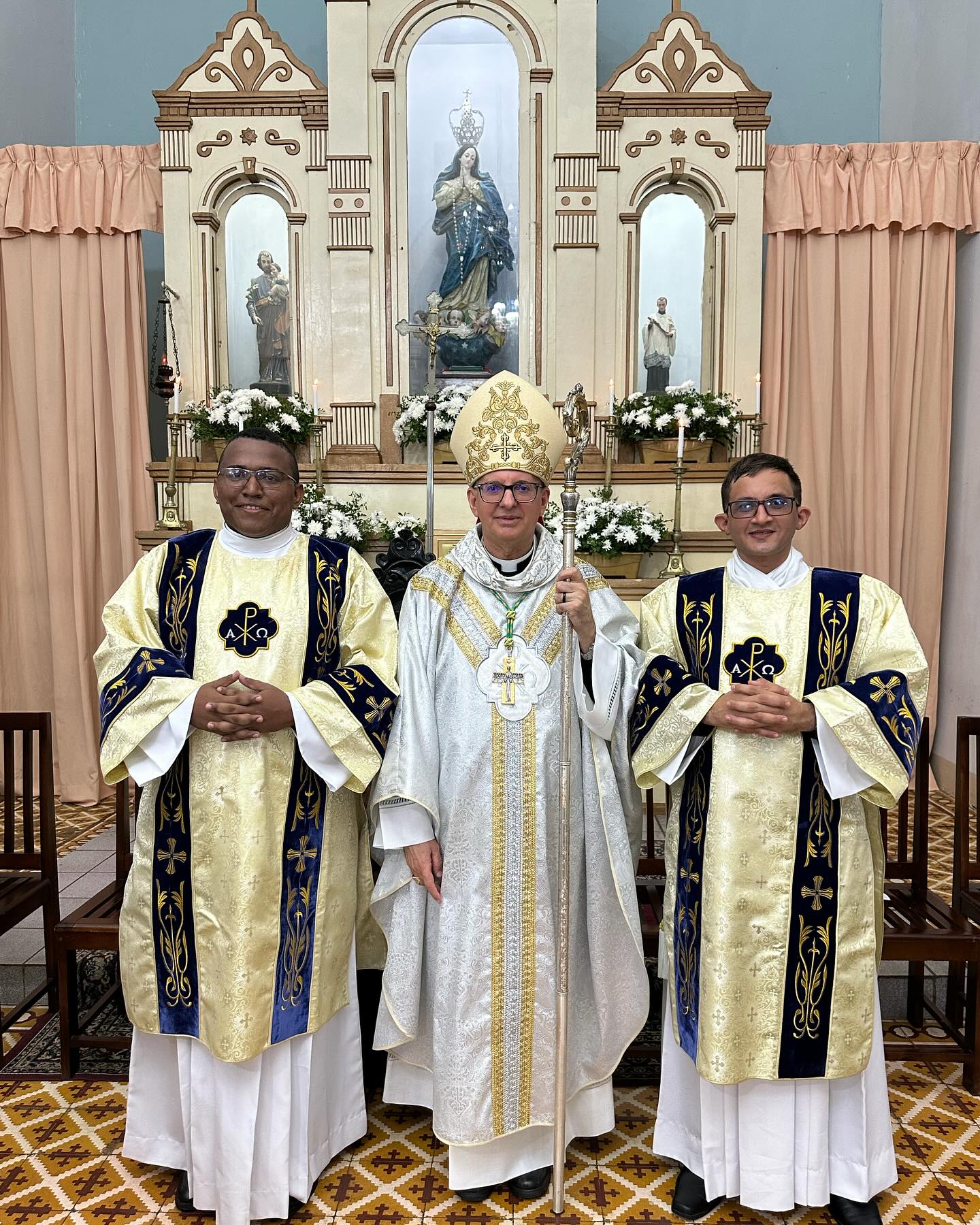 Realizou-se nesta segunda-feira, 18/12/2023, às 18 h, na Igreja de Nossa Senhora da Conceição, Paróquia Nossa senhora da Vitória, a missa solene de Ordenação diaconal dos seminaristas Odair Bezerra e Thássio Kalil. A celebração foi presidida pelo bispo diocesano Dom Edilson Nobre e concelebrada por diversos padres da nossa Igreja Particular e de outras dioceses, diáconos e seminaristas. Na assembleia marcaram presença familiares, amigos e um grande número de fiéis da comunidade e de outras paróquias da diocese.