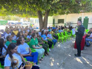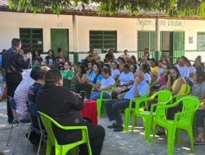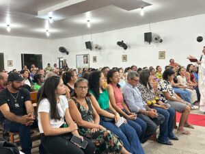 No quarto e último dia de visita pastoral foi realizado na escola municipal o café da manhã partilhado seguido da assembleia pastoral paroquial que se iniciou às 08:35hs com animação e oração inicial. Nela, estiveram presentes além do pároco Padre Julielmo, o padre José Francisco e mais 116 agentes pastorais na animação do espírito de eclesialidade e de prontidão na escuta da mensagem do bispo à sombra de uma grande mangueira frutífera. Formação, informação e comunhão constituíram o conteúdo da apresentação sobre algumas temáticas, por exemplo: símbolos representativos, dízimo, Centro Diocesano de Pastoral Expedito Lopes, funcionamento financeiro, entre outras. “A igreja diocesana faz parte da igreja católica apostólica romana: tem o papa, os sucessores apostólicos, bispos, colaboradores padres e diáconos. Por sua vez, assume uma paróquia que são redes de comunidades: Oitis, Estrito, Angical, Morões, Paraguai, Flor da América, Retiro Velho, Marrecas, Pau Ferro, Pussas I, Pussas II, Raparigas, Retiro do Oitis, Paraguai de Baixo, Setor São José, Barreiros, Matriz e Laranjo” (Dom Edilson). Na penúltima parte da assembleia houve homenagem e os parabéns ao Padre Julielmo, sorteios, oração final vocacional e benção. A assembleia terminou as 12:15hs seguida de almoço partilhado.