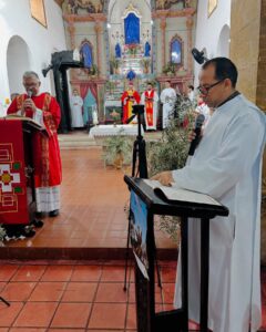A procissão chegou na Catedral, e teve inicio a Santa Missa, presidida por Dom Edilson, bispo da Diocese de Oeiras e concelebrada pelo frei Antônio, vigário paroquial da Paróquia de Nossa Senhora da vitória, Diácono Gutemberg da Rocha, seminarista Flavio, Ministros da Santa Comunhão e coroinhas.