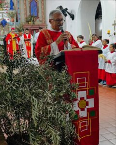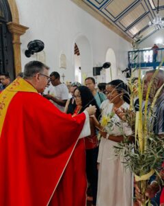 O Domingo de Ramos antecede o domingo da Páscoa e marca o inicio da Semana Santa. Com a presença de muitos fiéis concentrados na igreja de nossa senhora da Conceição, neste dia 13-04-2025, teve inicio ás 8:00h a distribuição benção dos ramos, oração e em seguida a procissão até a Matriz de Nossa Senhora da Vitória, onde acontece a Missa Solene dos Ramos. Antes da caminhada Dom Edilson, fez um convite a todos que antes de percorrer as ruas da cidade, que os cristãos façam uma memoria do peregrinar de Jesus em Jerusalém, os gritos do povo como: “hosana Filho de Davi”, quer dizer que estamos reconhecendo que Jesus é o nosso Salvador e procurando interiorizar tudo aquilo que Jesus vivenciou, mantendo o clima de oração.