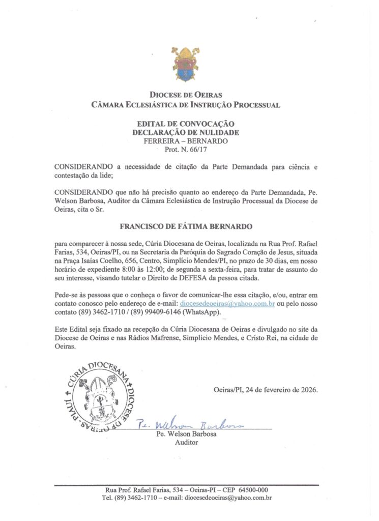 A Diocese de Oeiras realizou, no dia 7 de março, a Assembleia Diocesana de Juventudes 2026, reunindo jovens, lideranças e representantes de grupos e pastorais