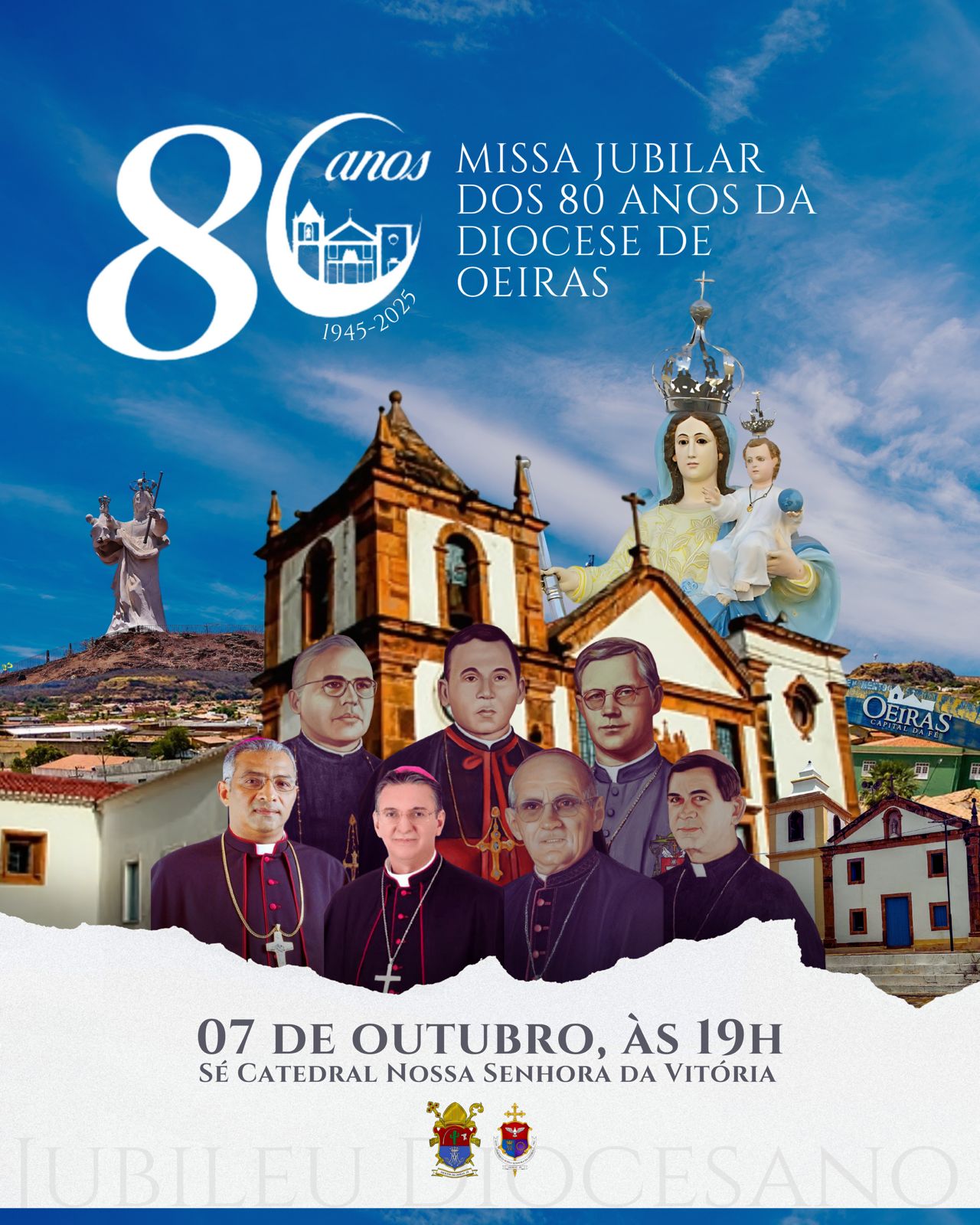 No próximo dia 07 de outubro, às 19h, a Sé Catedral Nossa Senhora da Vitória será palco de uma grande celebração: a Missa Jubilar dos 80 anos da nossa Diocese de Oeiras.