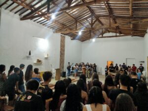 O encontro contou com mais de 70 jovens, sendo os jovens do grupo da JM da sede da paróquia, do Juventude Resposta, da comunidade Patos e demais jovens da comunidade paroquial.