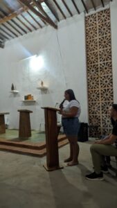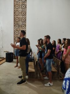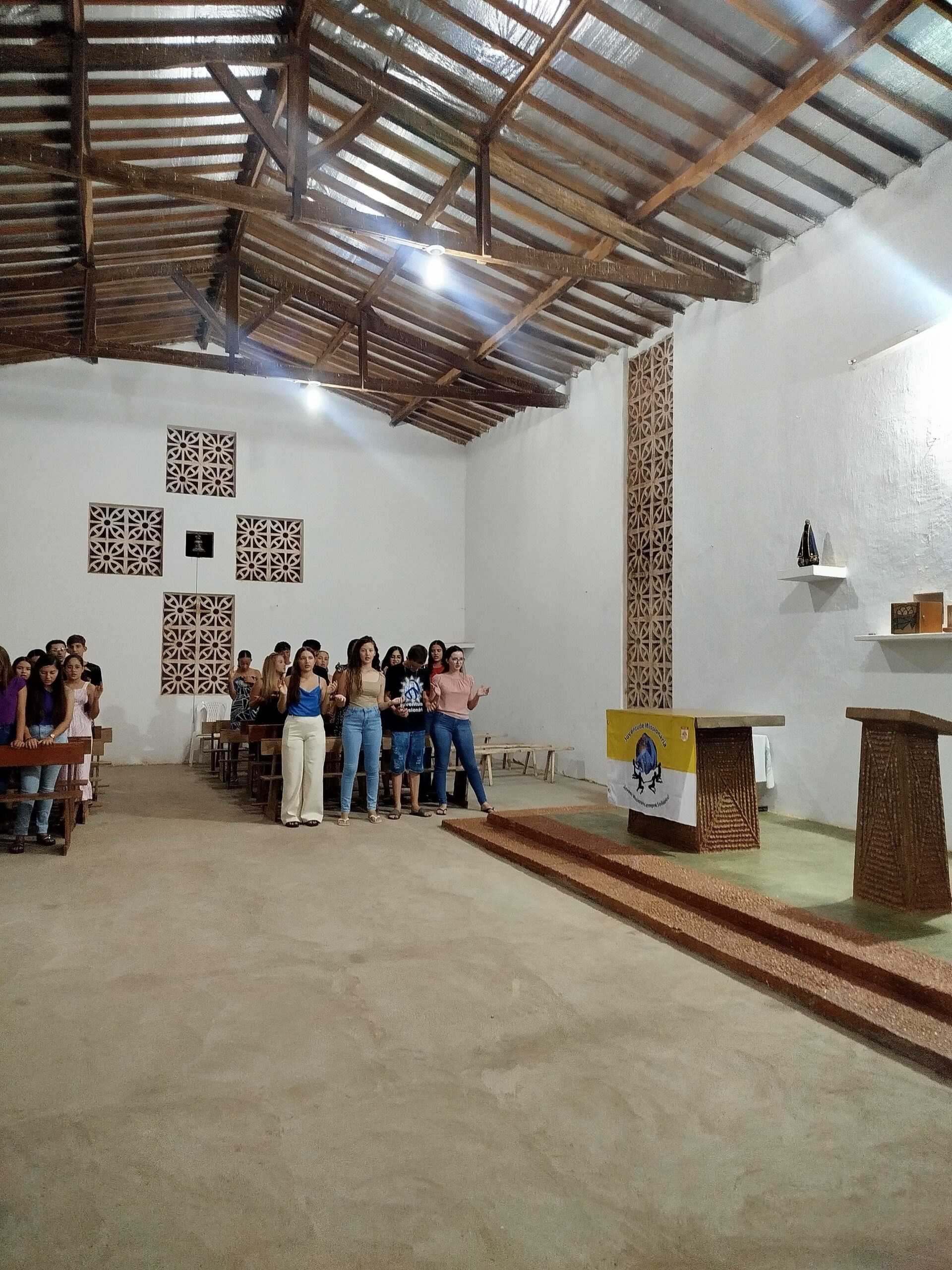 O encontro iniciou com o momento de oração, invocação do Espírito Santo, Leitura da Palavra de Deus e reflexão, ministrado pela jovem Késsia Maria, na qual refletiu-se a leitura bíblica de Jeremias 1, 4-10 em que refletiu sobre a nossa pertença a Deus, pois desde antes de sermos concebidos o Pai do Céu já nos conhecia. Em seguida foi realizado um momento de louvor e animação, em que os jovens puderam louvar a Deus pela vida, pela amizade, com muita alegria.