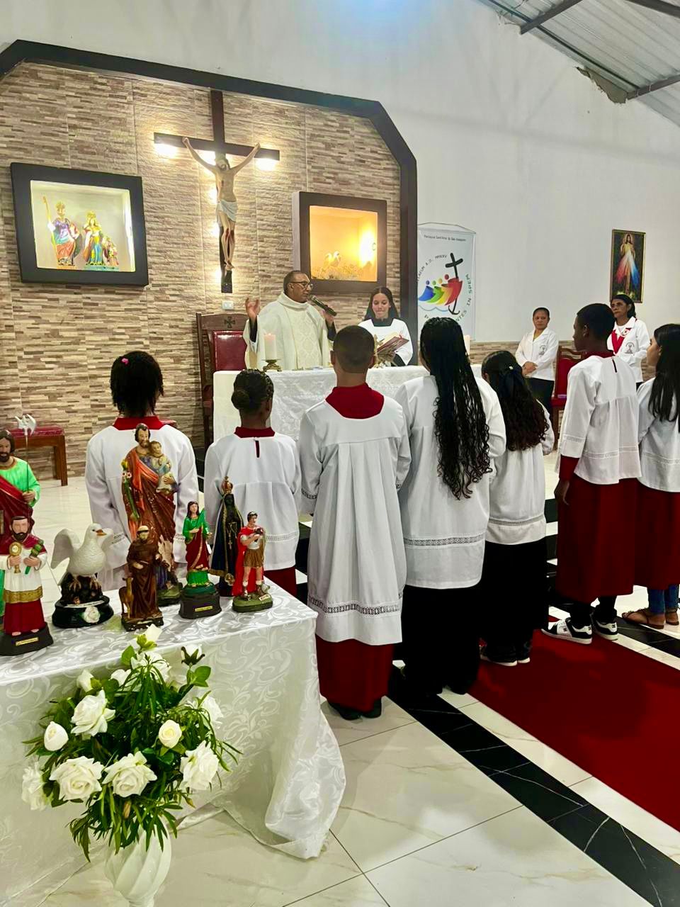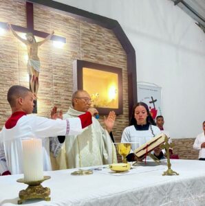 Em seguida, foi celebrada a Santa Missa, presidida pelo seu pároco o Pe. José Gildásio de Sousa Silva, que contou com a expressiva participação dos fiéis de todas as comunidades, tanto da zona urbana quanto da zona rural, reunidos como uma só Igreja para render graças a Deus por todas as conquistas, desafios superados e frutos colhidos ao longo desses 10 anos da Paróquia de Sant’Ana.