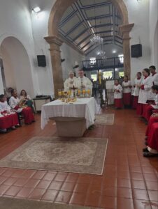 A Santa Missa, foi presidida por Dom Edilson Soares, bispo da Diocese de Oeiras e concelebrada pelo Pe. Kleyton Vieira, pároco da Paróquia Nossa Senhora da Vitória, Seminaristas, Diácono Gutemberg da Rocha, Ministros Extraordinários da Santa Comunhão e Coroinhas.