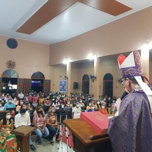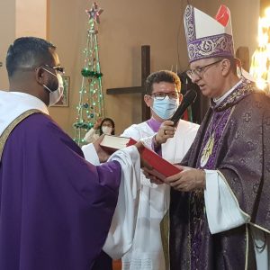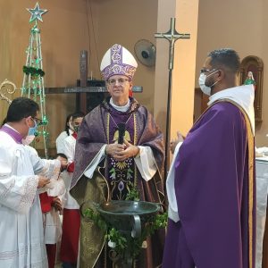 A leitura da Provisão do Pe. Adenildo Godoy, foi feita após a saudação inicial. A liturgia prosseguiu com o ato penitencial e liturgia da Palavra; na homilia, Dom Edilson destacou alguns pontos que justificam a importância de uma paróquia no contexto sócio eclesial e a missão que compete ao sacerdote ao exercer a função de pároco como colaborador do bispo no múnus de ensinar, santificar e governar o povo de Deus assumindo a fisionomia do Cristo Bom Pastor.