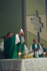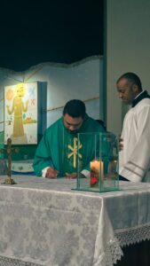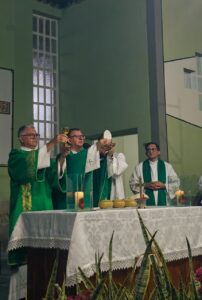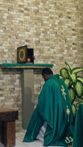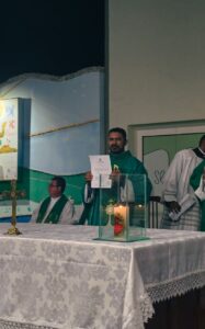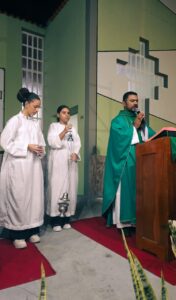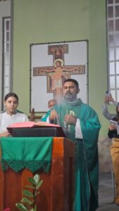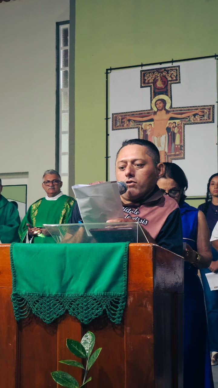 Em seguida, Pe. Antônio José renovou as promessas sacerdotais e fez a profissão de fé. Após esses atos, a Missa seguiu o rito costumeiro. Ao final da Celebração Eucarística fez uso da palavra, a Sra. Francisca Aparecida Costa de Sousa, em nome da comunidade Paroquial;
