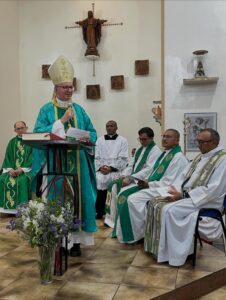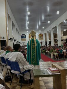 A missa prosseguiu com o rito normal e, após a comunhão, o casal Claudi e Simiranes leu uma mensagem de acolhida em nome de todas as pastorais.