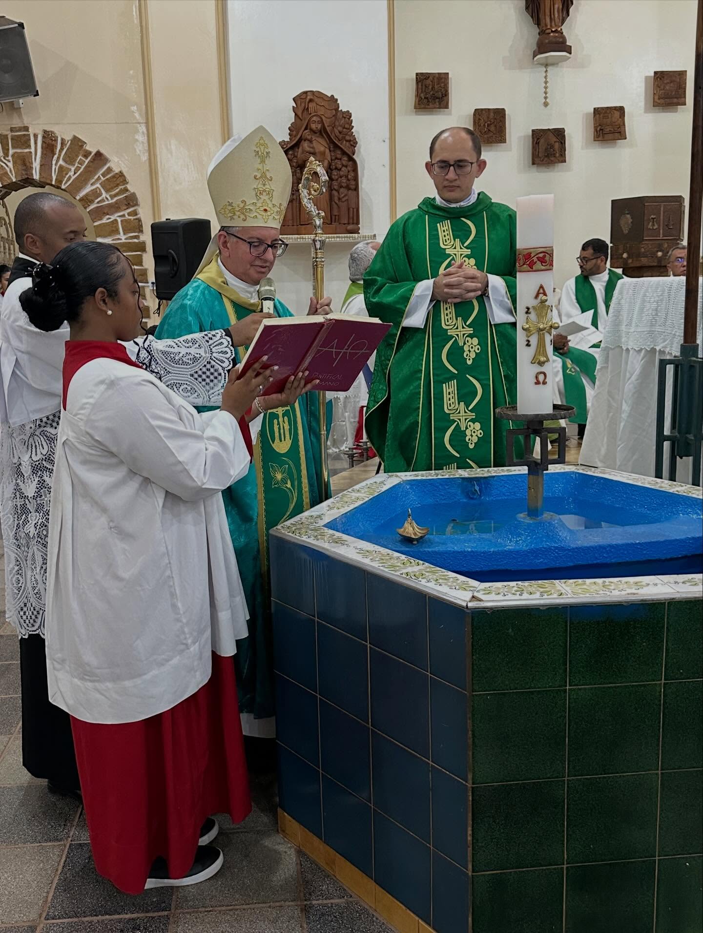 Visivelmente emocionado, o Padre Welson agradeceu a acolhida calorosa, com lágrimas nos olhos, reconhecendo o apoio do bispo e dos padres presentes. O coral da paróquia enriqueceu a celebração com músicas que ecoavam vozes de fé.