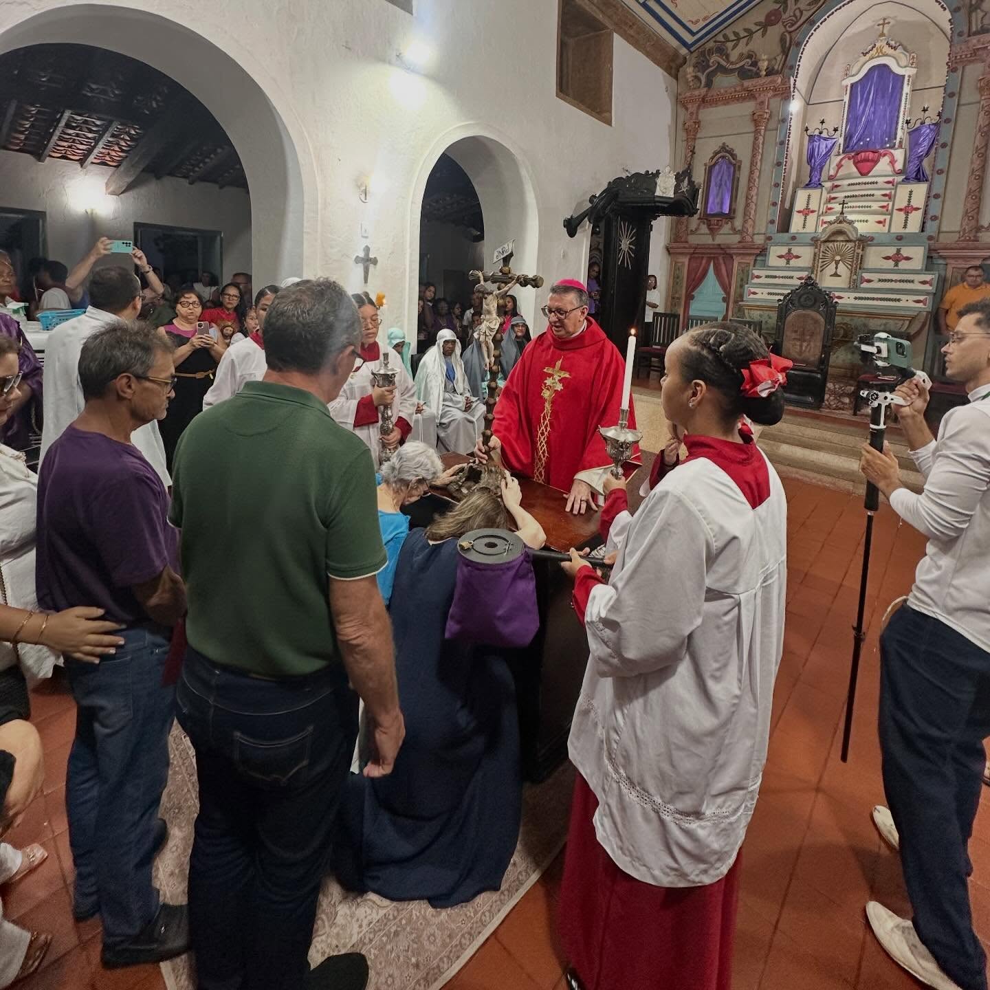 No canto da Paixão de Nosso Senhor Jesus Cristo segundo João, mais uma vez houve a participação direta dos fiéis ao longo da leitura e, ao fim, uma breve reflexão de dom Edilson sobre a celebração, encerrando com o questionamento: “diante da prova de amor que Jesus nos dá se entregando na cruz, quanto eu estou amando a Jesus com a minha entrega? ”