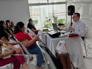 Seguindo a programação proposta, o pe. Gildásio, após a oração inicial, fez uma breve explanação sobre o que é o ano Jubilar e seus fundamentos bíblicos e orientações do papa Francisco sobre o Jubileu da Esperança 2025.