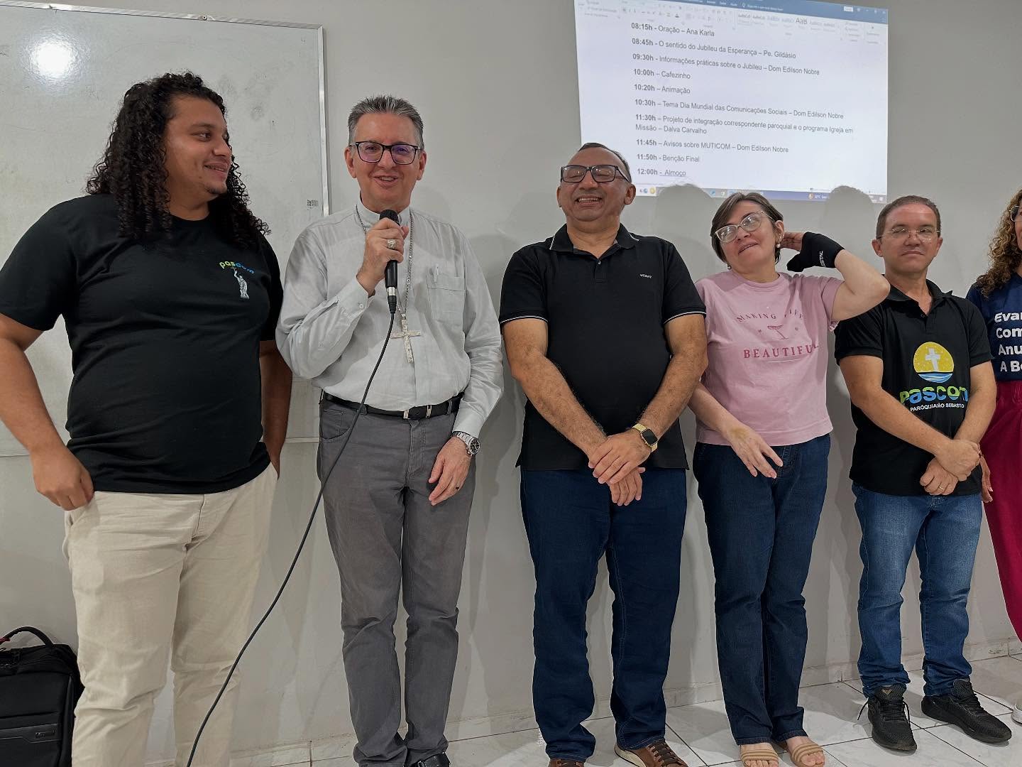 Para finalizar, dom Edilson apresentou a todos a proposta do Mutirão Nacional de Comunicação – Muticom – que em 2025 acontece em Manaus (AM) entre os dias 25 e 28 de setembro e, para auxiliar nos custos para o deslocamento daqueles que desejarem ir ao mutirão e com despesas do evento, está sendo vendida uma rifa de celular para ajudar com os gastos, quem desejar vender, basta pegar um bloco do sorteio e realizar a venda.