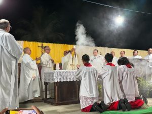 A Missa campal teve início às 18 horas, com a presença do bispo diocesano de Oeiras, Dom Edilson Soares Nobre, vários padres e diácono das dioceses de Oeiras, Floriano, São Raimundo Nonato, Campo Maior e da arquidiocese de Teresina, religiosas, familiares e diversas caravanas das paróquias nas quais o Pe. Juvenal exerceu o seu ministério, a saber: Itaueira, Flores do Piauí, Paes Landim, Oeiras e Colônia do Piauí, além dos fiéis de Santa Rosa do Piauí.