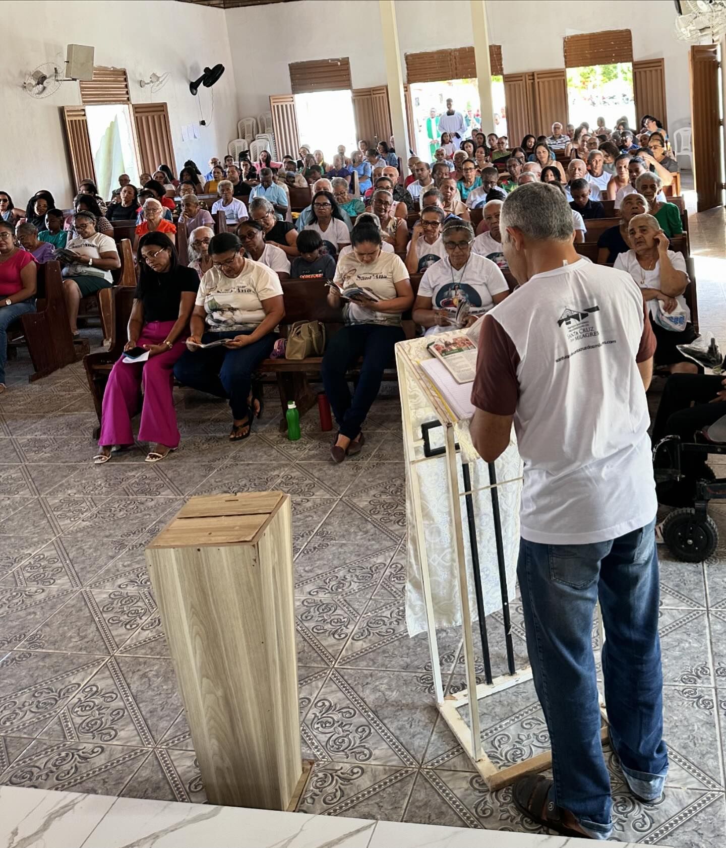 Na assembleia fieis católicos agradeciam chegada do novo pastor. Rezemos para que conduza com amor e dedicação esta porção do povo de Deus a ele cofiado.