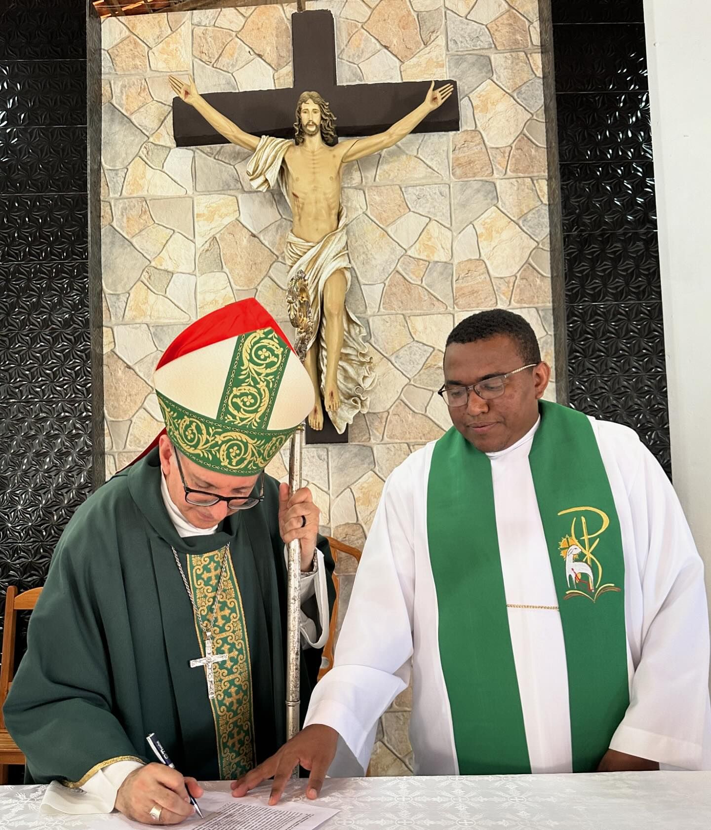 Na manhã do domingo, 22/09/24, durante a Celebração Eucarística, na Paróquia Senhora Sant’Ana, em Arraial – pi, Dom Edilson Nobre empossou o novo Administrador Paroquial, o padre Thassio Kalil.