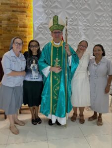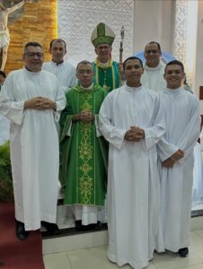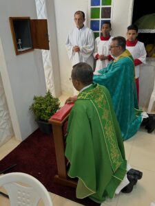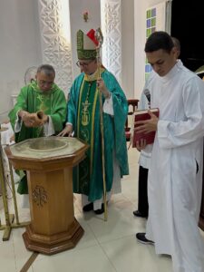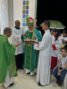 A Santa Missa foi presidida pelo bispo diocesano, Dom Edilson Soares Nobre, que conduziu o rito de posse conforme as normas da Igreja. Durante a celebração, foram realizados os gestos simbólicos próprios da posse canônica, entre eles a leitura da provisão, a profissão de fé e o juramento de fidelidade, confirmando oficialmente o início do ministério do novo pároco à frente da comunidade.