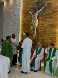 Em sua homilia, o bispo destacou a importância da missão pastoral confiada ao sacerdote, recordando que o pároco é chamado a ser sinal do cuidado de Cristo, o Bom Pastor, conduzindo o povo de Deus com zelo, proximidade e espírito de serviço.