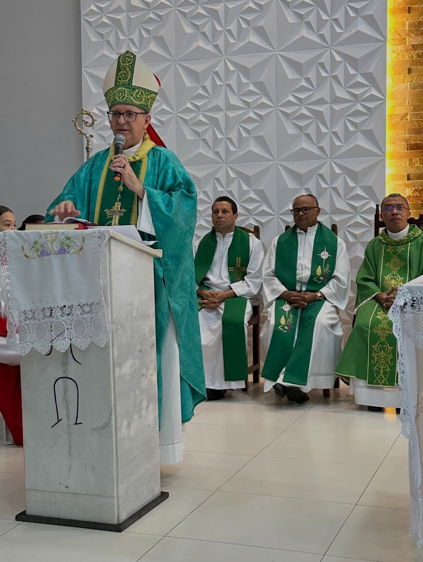 Em sua homilia, o bispo destacou a importância da missão pastoral confiada ao sacerdote, recordando que o pároco é chamado a ser sinal do cuidado de Cristo, o Bom Pastor, conduzindo o povo de Deus com zelo, proximidade e espírito de serviço.