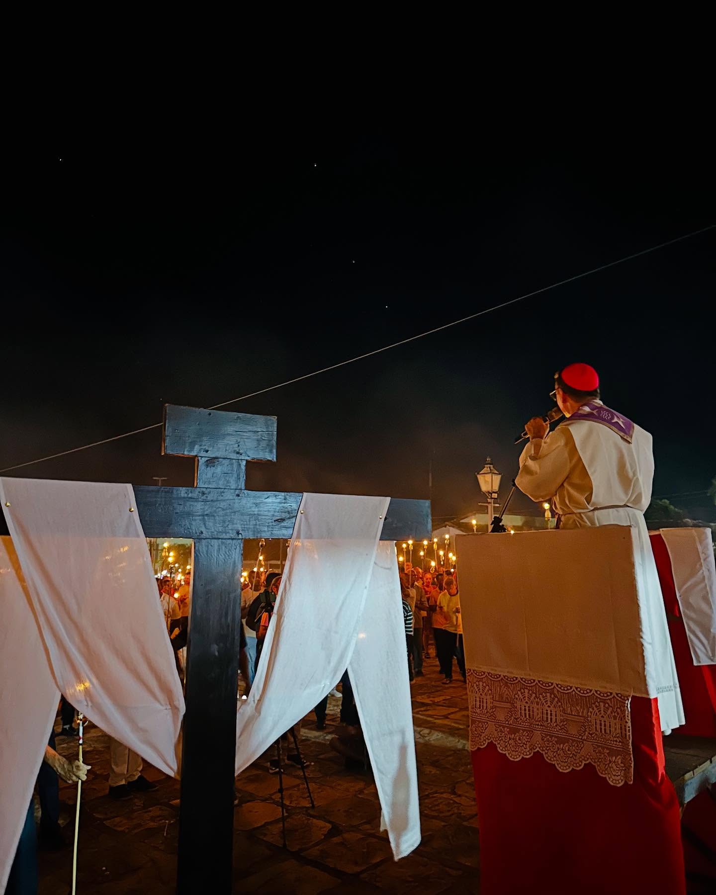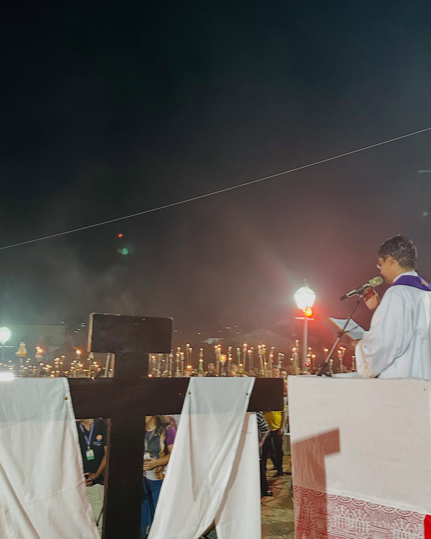Com as luzes apagadas e com cantos de lamento e oração a procissão de homens, seguiu nas ruas e retornou para o patamar da Catedral de Nossa Senhora da Vitória, com Sermão do Fogaréu, proferido por Pe. Genilson Sousa, das Pontifícia Obra da Propagação da Fé.