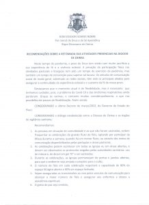 RECOMENDAÇÕES SOBRE A RETOMADA DAS ATIVIDADES PRESENCIAIS NA DIOCESE DE OEIRAS
