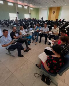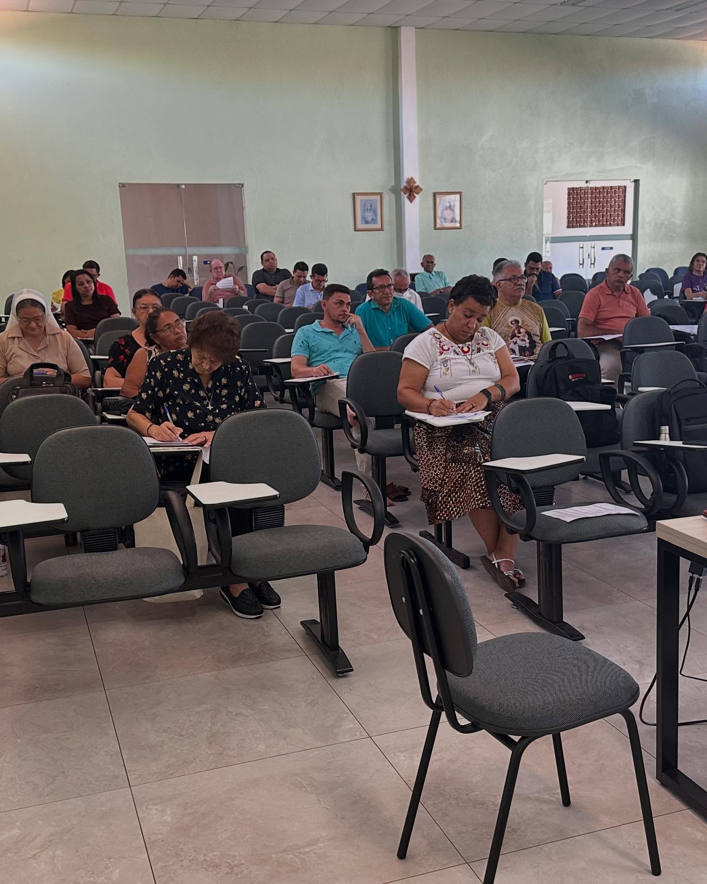 Prosseguindo o tema, dom Edilson conduziu os trabalhos, dividindo as pessoas presentes em cinco grupos, para formalizar as discussões e organizar a síntese acerca de temáticas discutidas no livreto de encontros e estudos sobre a 16ª Romaria da Terra e da Água no Piauí, que acontecerá dias 19 e 20 de julho de 2025 em Bom Jesus do Gurgueia. Nos grupos discutiram os problemas que afetam a vida humana e do planeta, a terra e água como: Envolvimento da comunidade e ação participativa; Juventudes, educação e espiritualidade ecológica; Estilos de vida com sustentabilidade para o Piauí; Clamor da terra e dos pobres e Economia ecológica e os grandes projetos econômicos no Piauí. Após as discussões foi realizado a plenária, para apresentação dos estudos de cada grupo, pelos secretários de cada grupo formado para o estudo.