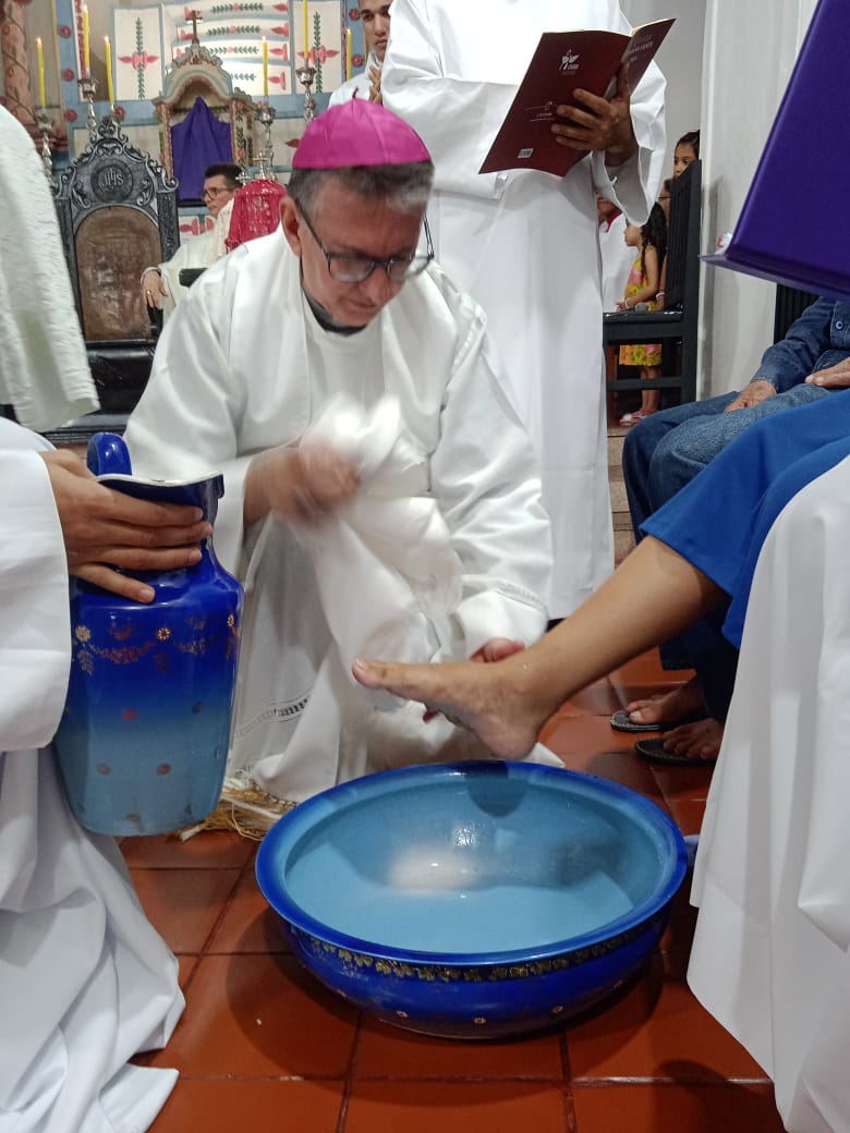 Durante a proclamação do Evangelho Dom Edilson Nobre, procedeu a cerimônia do Lava-pés, momento em que lavou os pés de doze homens e mulheres da comunidade, representando de forma simbólica os doze discípulos de Jesus, repetindo o gesto de humildade e de serviço de Cristo. Ainda nessa celebração litúrgica o bispo diocesano fez memória da instituição da Eucaristia, atualizando o memorial da Paixão e morte de Jesus.