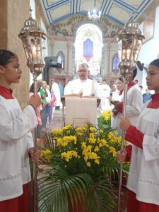 Na tarde da Quinta-Feira Santa, 28/04/2024, às 17h, foi celebrada a Solenidade da Ceia do Senhor com a cerimônia do Lava-pés e Transladação do Santíssimo Sacramento na Igreja Catedral Nossa Senhora da Vitória. Presidida pelo bispo diocesano, Dom Edilson Nobre, a celebração foi concelebrada por Pe. Rogério Nascimento, pároco da catedral, Pe. Wellington Rodrigues, Vigário da catedral, diácono Gutemberg Rocha e seminaristas. Na assembleia centenas de fieis participaram da Santa Missa.