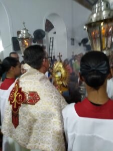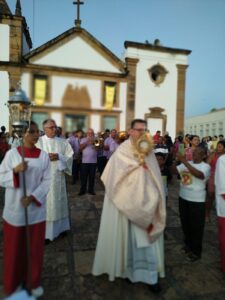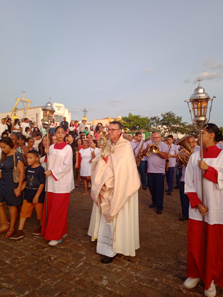 Após a Missa, seguiu a procissão até a igreja de Nossa Senhora do Rosário, onde Dom Edilson deu a benção com o Santíssimo Sacramento.